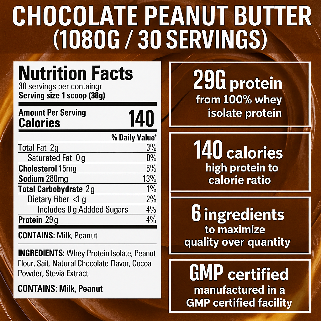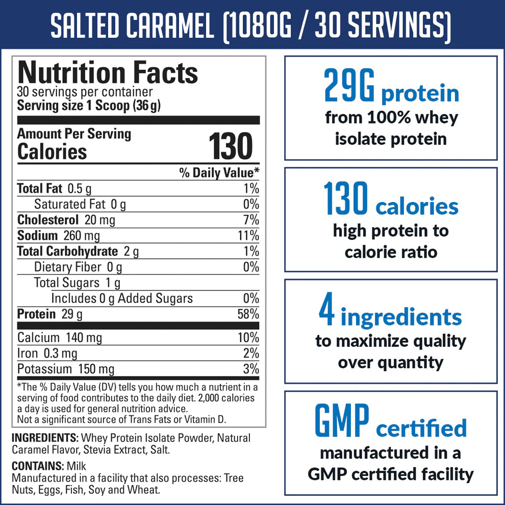 After years of research and development, we finally had a formula we felt comfortable releasing to you, and that is what we have today. By selecting only the highest quality whey protein which then undergoes an additional filtration process to remove excess fat, carbs, and sugar. We then add only 3 additional ingredients to give it the great taste and feel you’re looking for. The finished product is a premium whey protein isolate that delivers 29 grams of muscle-building protein per serving with minimal carbs and fats.