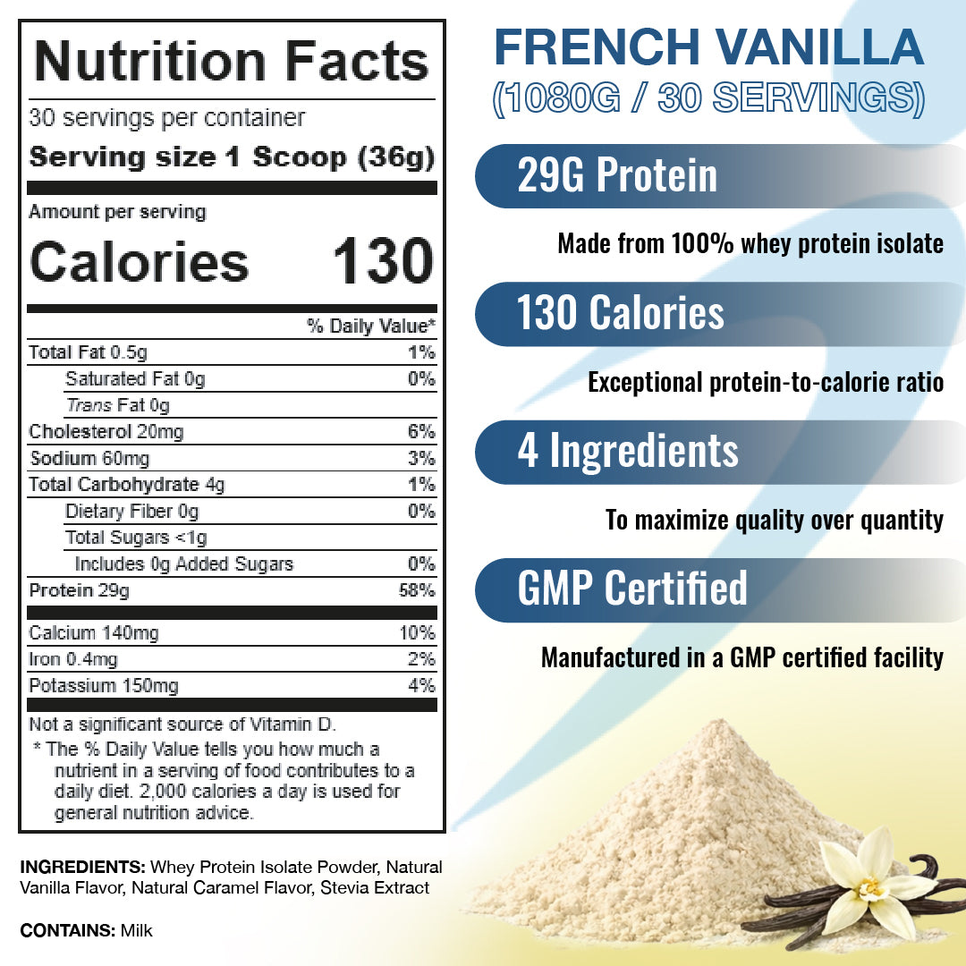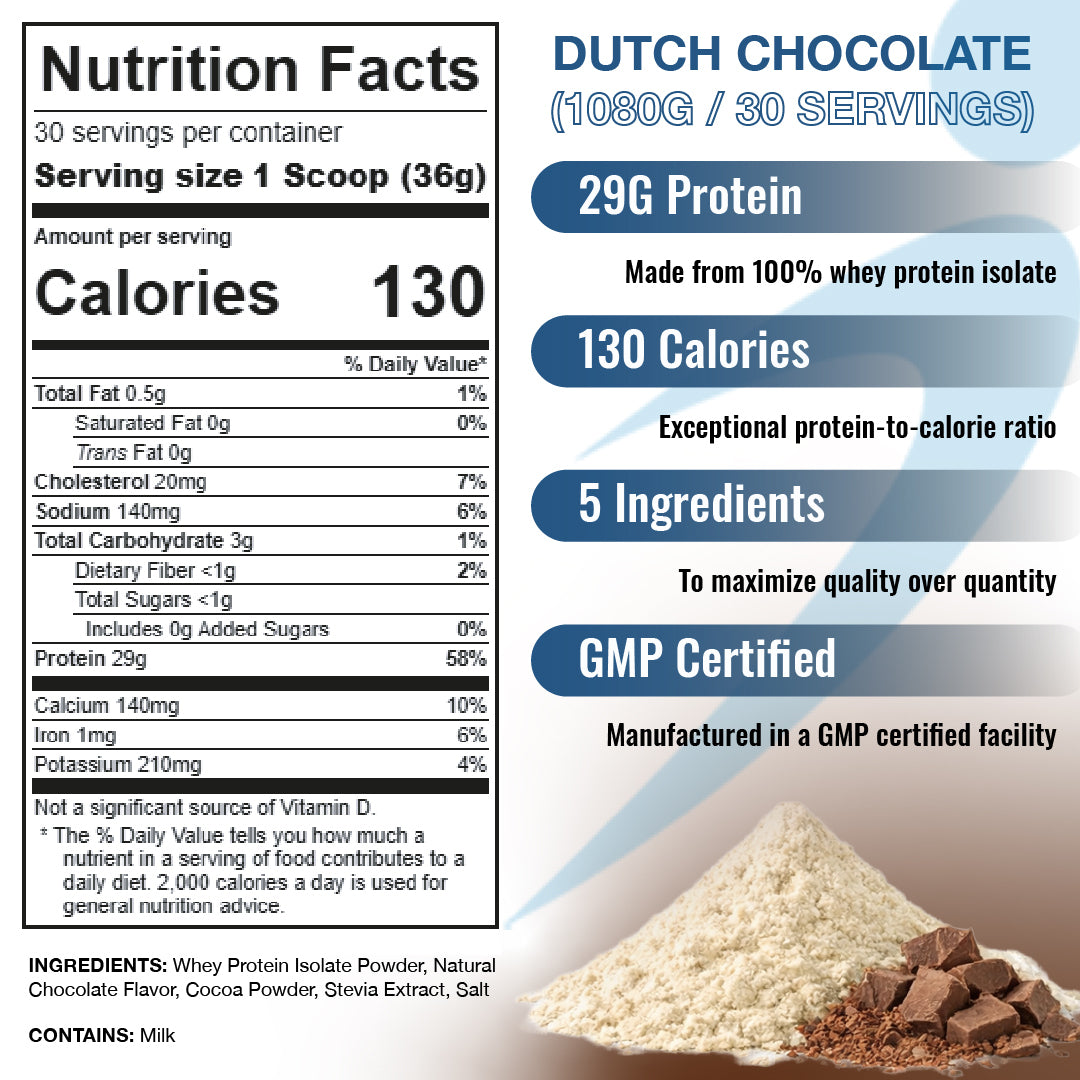 Each scoop (36g) delivers 29g of high-quality whey protein isolate, packed with all the essential amino acids your body needs to support muscle recovery, strength, and growth.